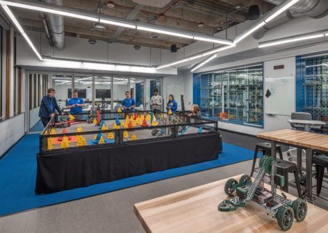 An expansion and remodel of the current robotics classrooms at Omaha North High School. The project included all new AV equipment, lighting and display cases for robotics awards. A new nano wall and robotics arena was included in the expansion.